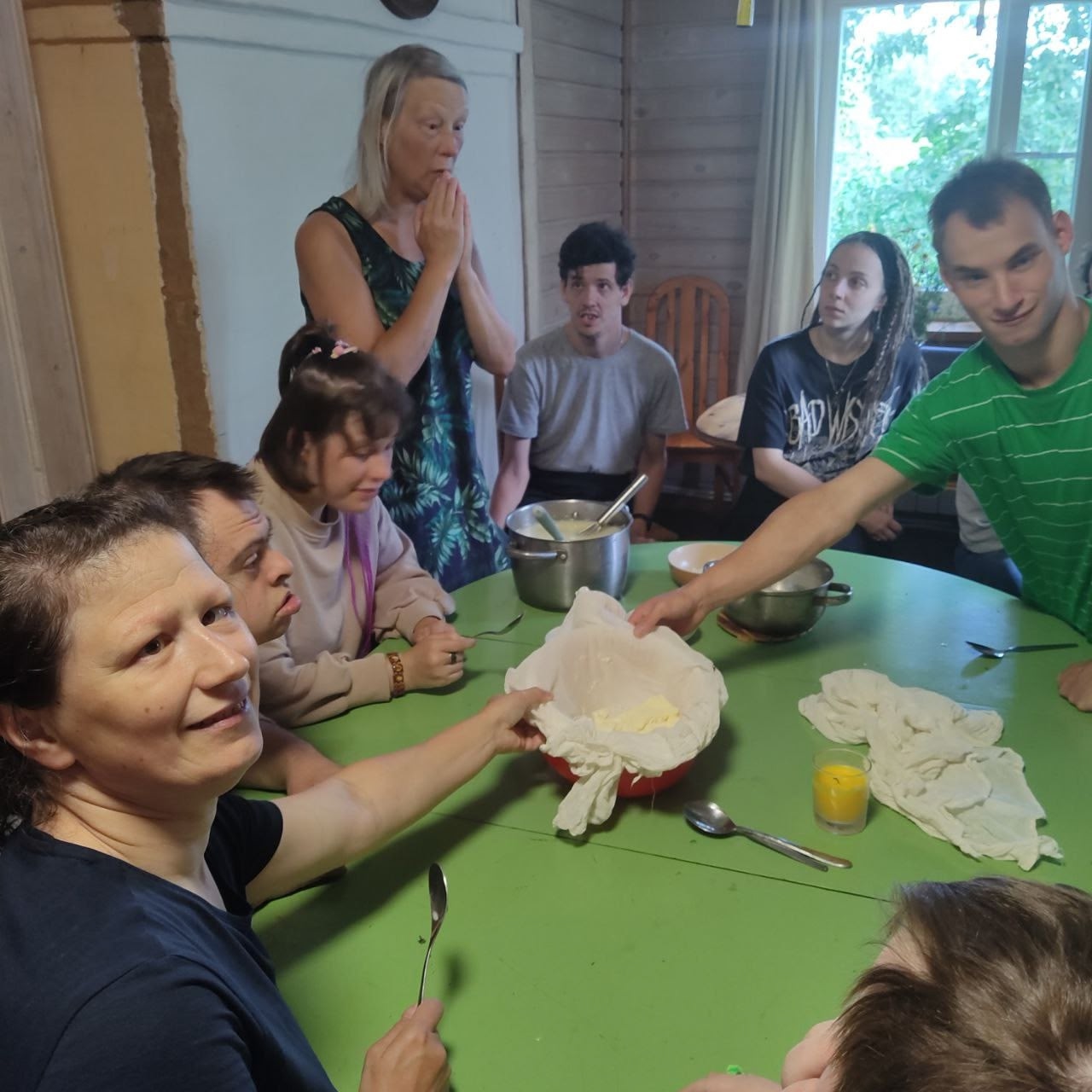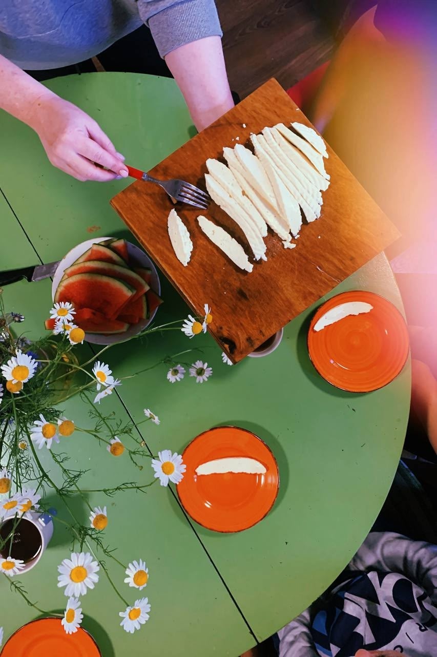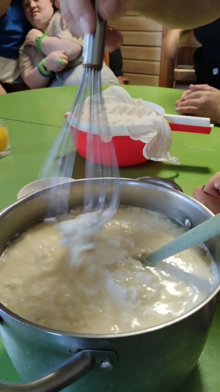 🧀Неотрывно следили за процессом изготовления сыра, который продемонстрировала нам хозяйка деревни Елена. От добавления в тёплое молоко бактерий до получения сырного зерна и прессования. И, конечно, любимая часть - дегустация во время каждого этапа производства.